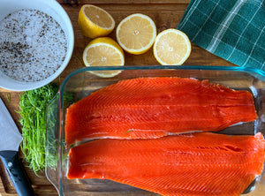 Wild salmon spend their lives in the ocean eating a rich diet of phytoplankton, whereas farmed salmon are dyed to mimic the bright red flesh of their wild counterparts. Wild Sockeye is an amazing superfood, the natural occurring health benefits of which have yet to be mimicked in farmed salmon. Wild Sockeye is a great source of Omega 3’s, Vitamin D and selenium. Additionally, buying wild Bristol Bay sockeye supports a fisherman owned industry unlike fish farms that are owned by large companies.